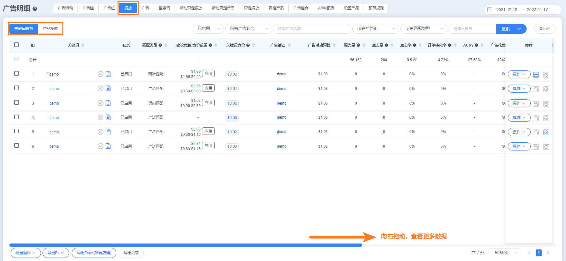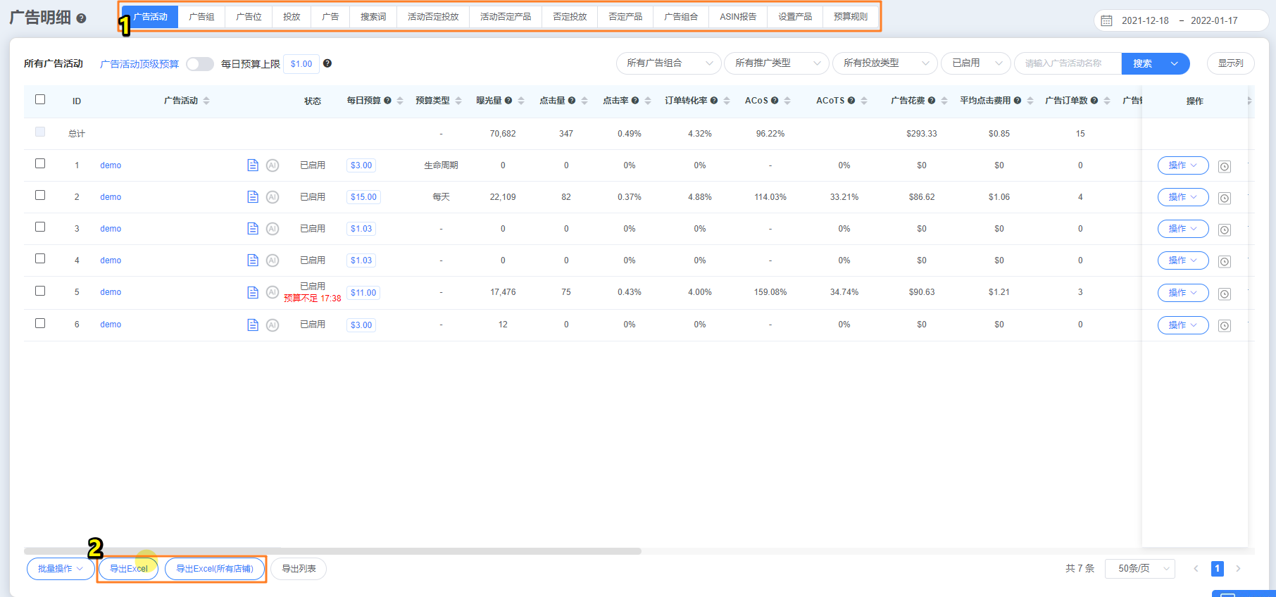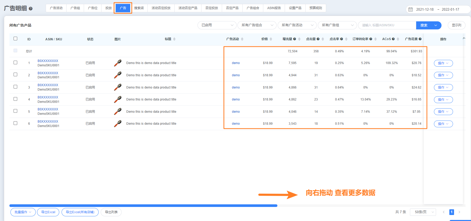 (1)展示店铺/站点所有广告活动不同层级的多维度数据,提升数据浏览体验