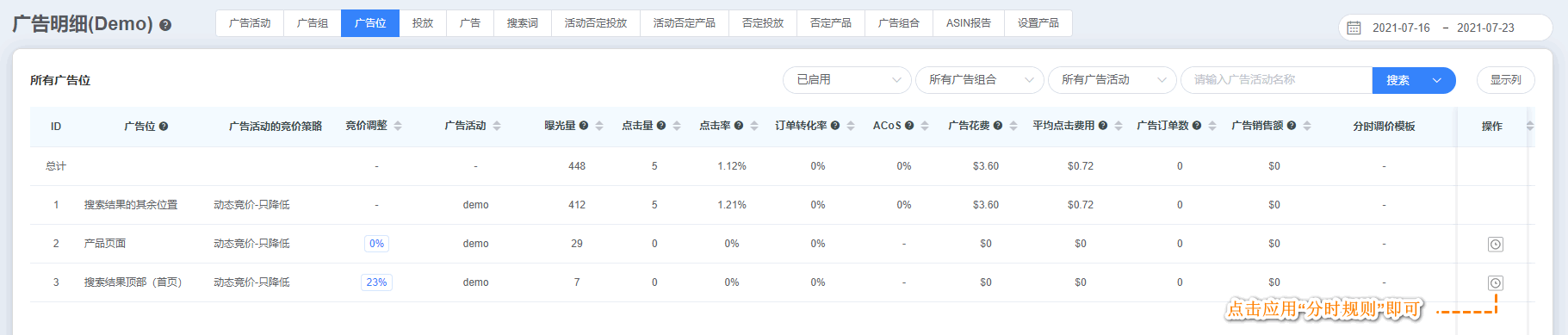 如需为广告位应用“分时调价规则”,可点击对应功能图标进行操作。