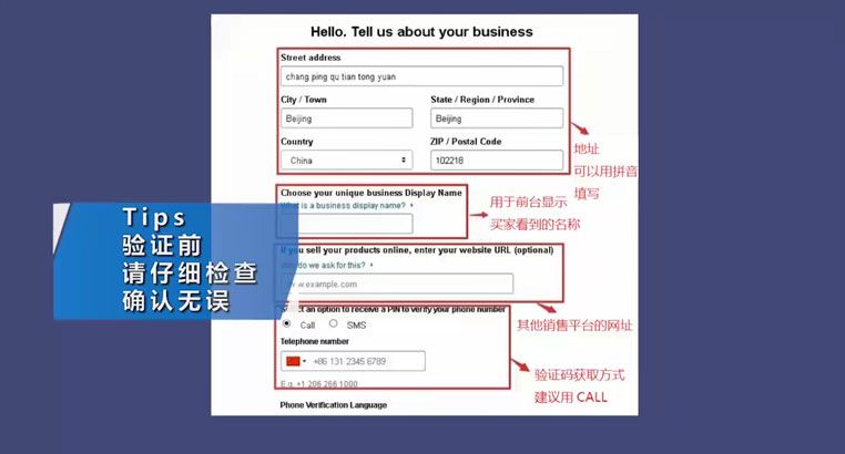 3.填写地址信息。用英文的地址或拼音代替都可以。如果在其它网站上还有开店,可以直接把店铺URL(网址)粘贴过来。最后是认证,这里可以选择电话或者是短信。在填写接受验证码手机号时,要先确认填写的手机号之前是否在亚马逊卖家系统出现过,如果有过,千万不要使用,容易产生关联。选择Call时,页面会弹出一个页面显示PIN以及四位数字,电话响后,输入进去即可;选择SMS时,您会收到一位四位的PIN编码,输入到弹出的页面即可。一般会有三次机会,如果一直接不到电话,可以考虑换短信尝试。
